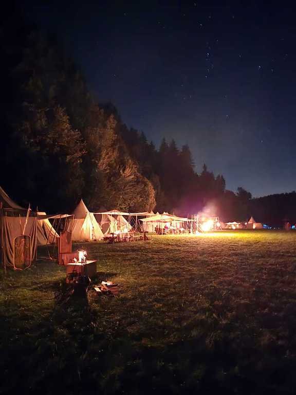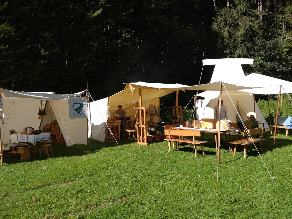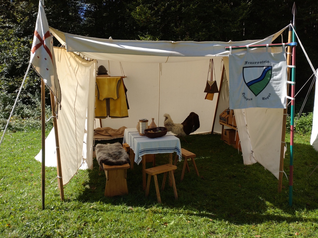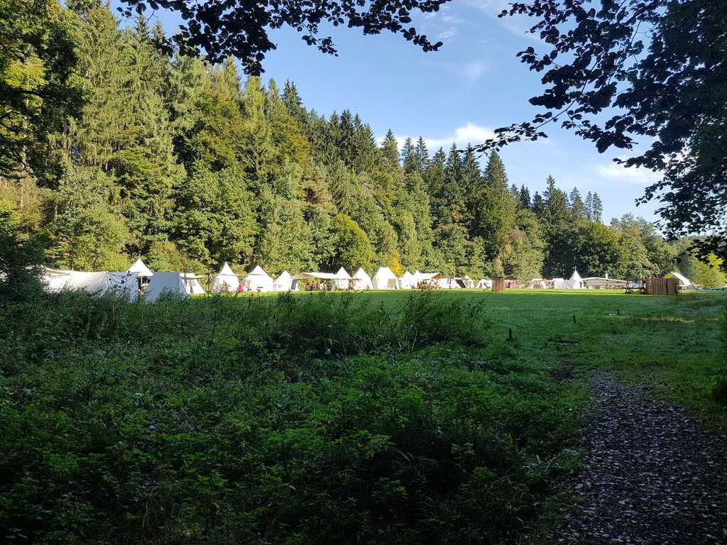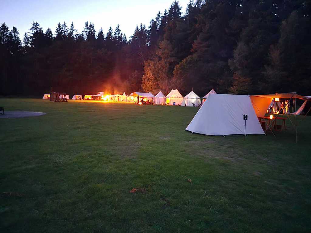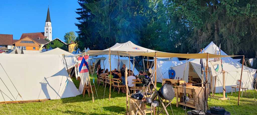 Wir freuten uns schon sehr auf das Mittelalterfest ‚Auf Heller und Barde‘ in Arnstorf, das nur alle vier Jahre stattfindet. So bauten wir dort auch unser bisher größtes Lager zusammen mit den Burgfreunden zu Julbach und dem Falkensteiner Ritterbund auf.