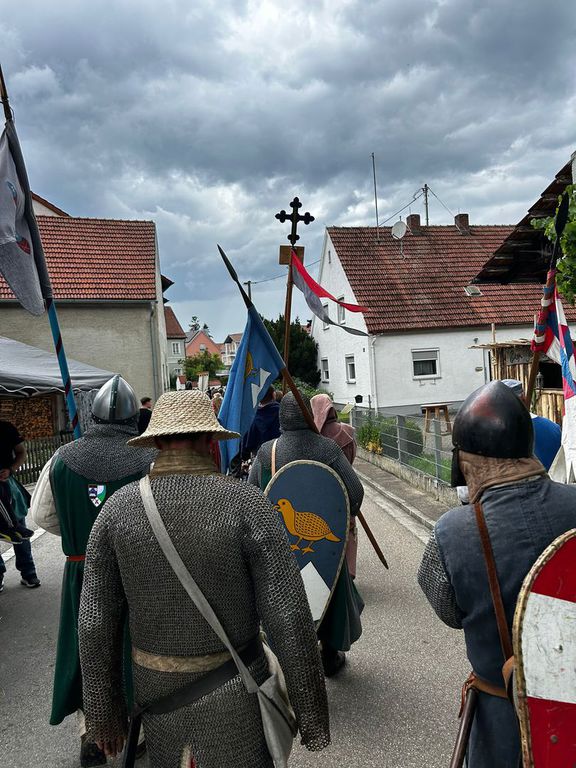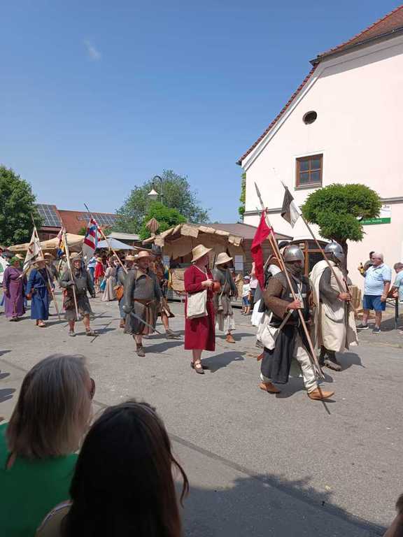 Am Sonntag folgten einige von uns dann noch dem sehr langen Festumzug als Kreuzfahrerheer zusammen mit anderen Vereinen und schwitzten bei diesen Temperaturen, angetrieben vom Jubel der Zuschauer, über 30.000 an diesem Wochenende!, auch das letzte Kettenhemd noch durch.