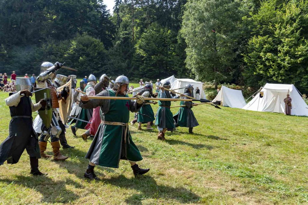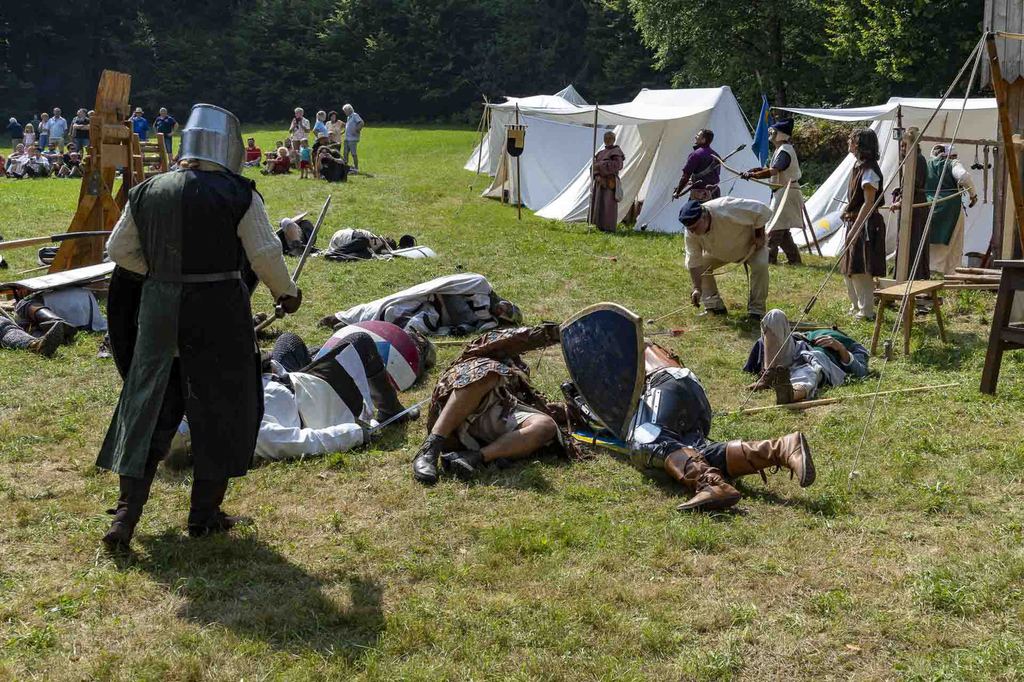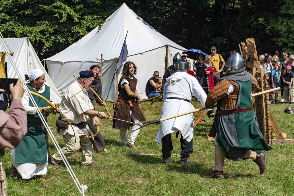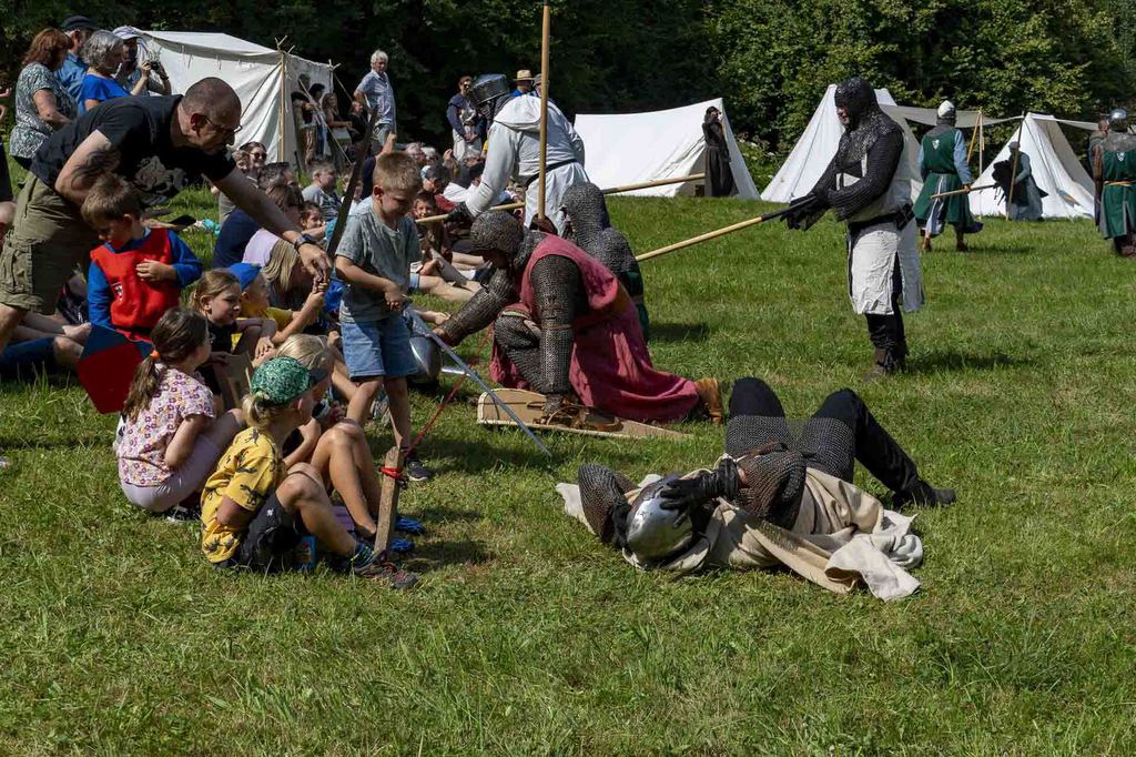 Natürlich ging es bei der diesjährigen Schlacht um die Bärenburg wieder ans Eingemachte. Außerdem gab es auch ein Armbrustturnier, eine Kräuterwanderung, eine Sängerin mit historischen Instrumenten und natürlich genügend Zeit, gesellig beisammen zu sitzen.
