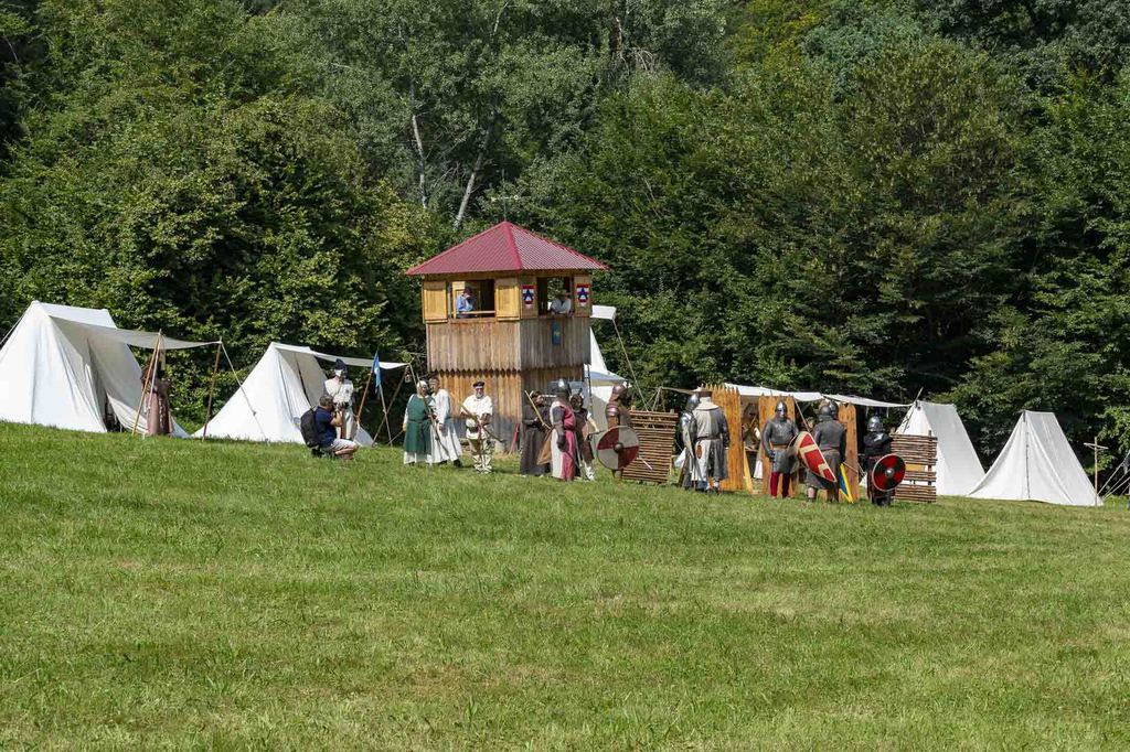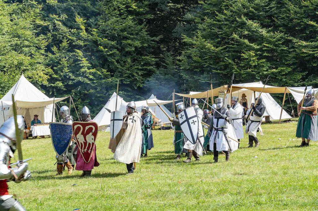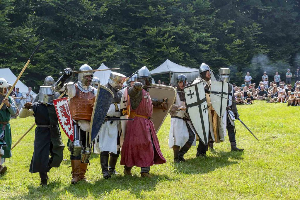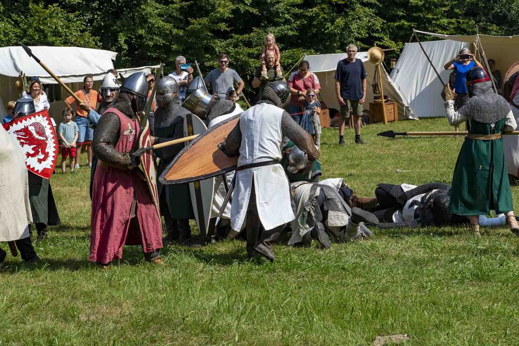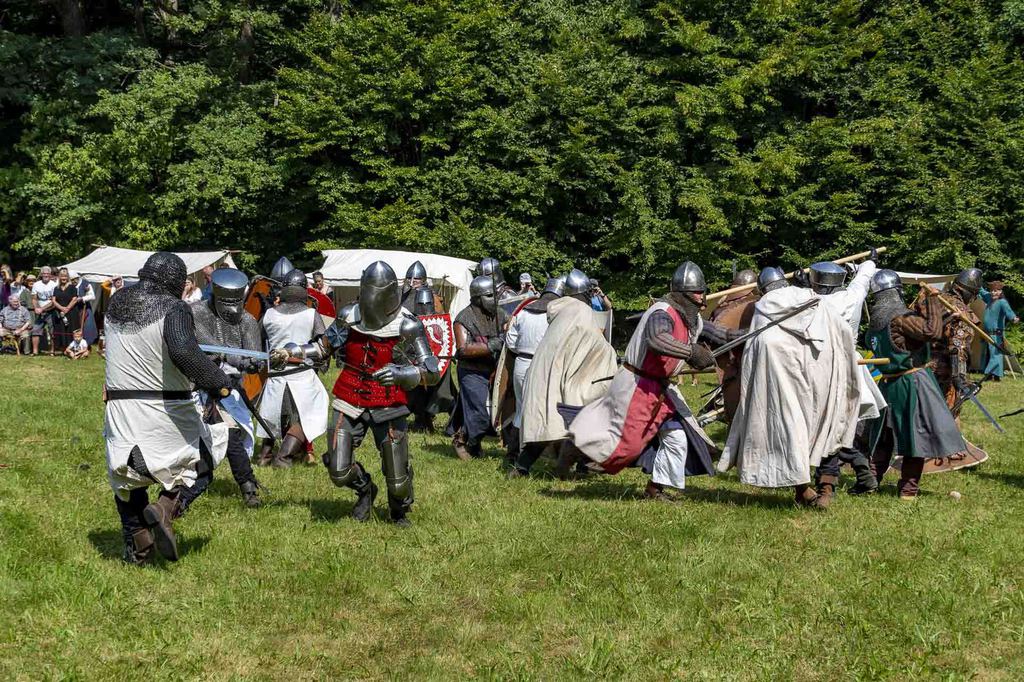 Natürlich ging es bei der diesjährigen Schlacht um die Bärenburg wieder ans Eingemachte. Außerdem gab es auch ein Armbrustturnier, eine Kräuterwanderung, eine Sängerin mit historischen Instrumenten und natürlich genügend Zeit, gesellig beisammen zu sitzen.
