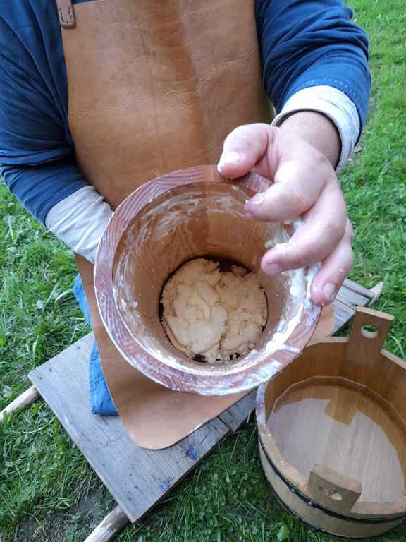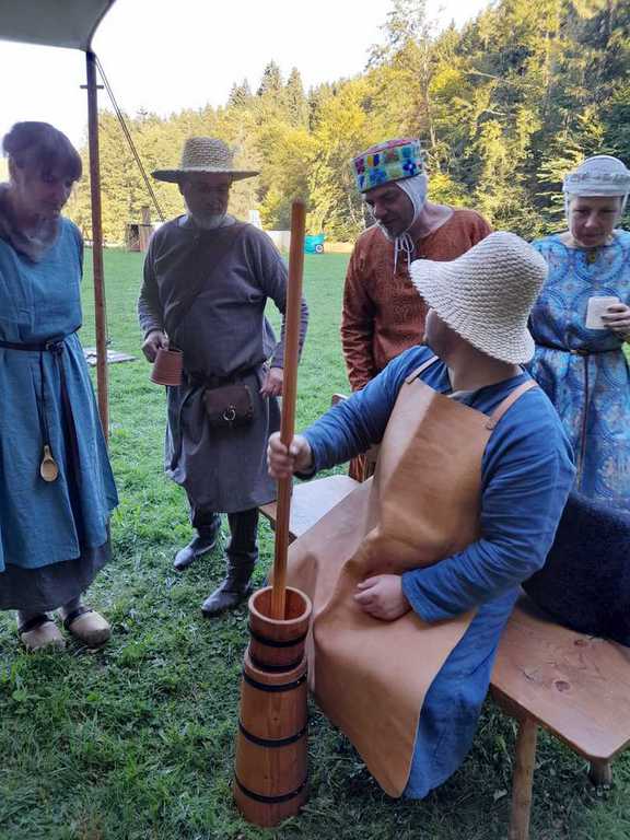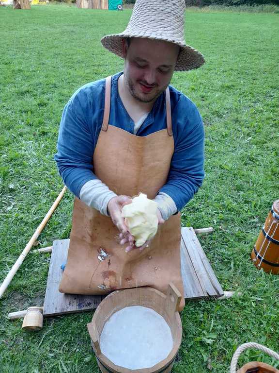 Für uns ein Highlight war der Test unserer neuen Lagerküche, die sich dabei sehr bewährte. Auch probierten wir zum ersten Mal aus, selbst Butter mit dem Butterstampfer herzustellen.