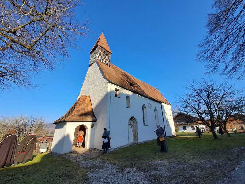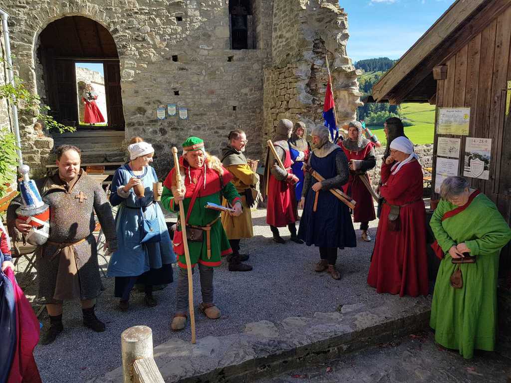 Eingeladen zu einer Pilgerwanderung vom Falkensteiner Ritterbund machten wir uns bereits am frühen Morgen nach Flintsbach am Inn auf. Der Weg führte uns an der Seite des kleinen Madron hinauf zu den Ruinen der Burg Unter-Falkenstein und weiter zur Burg Ober-Falkenstein oder auch Rachelburg genannt.